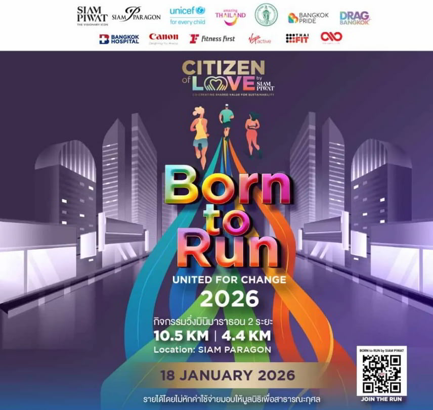On January 18, 2026, at Siam Paragon Bangkok, join one of the city’s most inspiring charity runs. Organized by Siam Piwat with partners including TAT, Bangkok Pride, Drag Bangkok, and BMA, this major running event invites everyone to run for solidarity and social change.