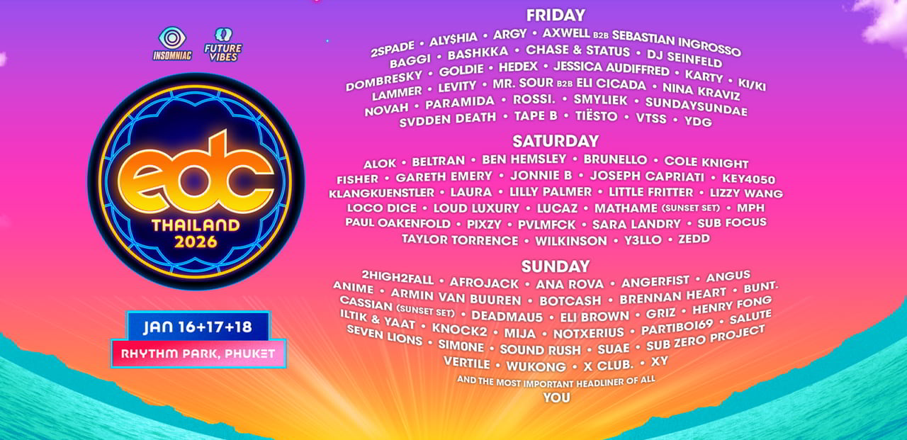 | Jan 16 – 18, 2026 | Electric Daisy Carnival (EDC Thailand) | Electronic music festival | Phuket |